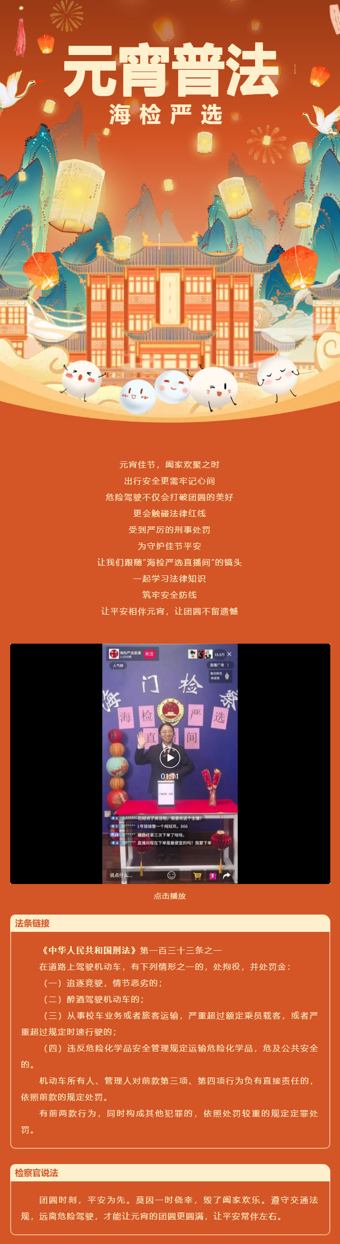 上架平安,下架危险驾驶!南通市海门区检察院元宵普法