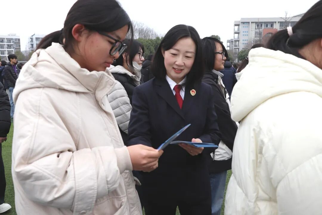 向师生发放普法宣传册,将核心法律知识、维权渠道等内容“打包”送上,方便随时学习查阅。面对面解答师生法律疑问,提供精准普法服务,切实提升师生法治获得感与安全感。