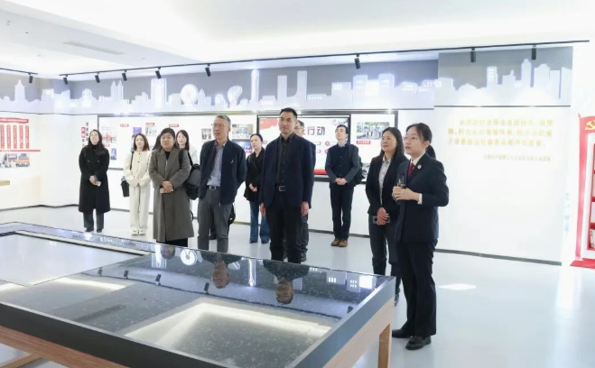 与会人员共同观看了园区检察院涉外检察工作宣传片《“外合致远”,彰显国际化法治底色,涉外检察“破层出圈”》,并参观了园区检察院检察文化阵地和“非凡园检”党建先锋阵地,实地了解该院在典型案例、检察文化、党建工作等方面的特色亮点。