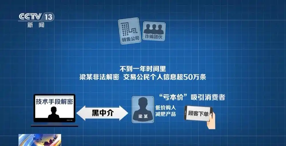 原来,梁某先以低廉的价格购入减肥产品,再以“亏本价”等为噱头吸引消费者购买。大量顾客下单后,梁某就会联系黑中介,利用技术手段解密平台加密的订单,进而将包含消费者姓名、电话、住址的完整个人信息出售给各类销售公司甚至诈骗团伙。经查,不到一年时间,梁某非法解密、交易公民个人信息超50万条,镇江市丹徒区检察院以侵犯公民个人信息罪对其提起公诉。