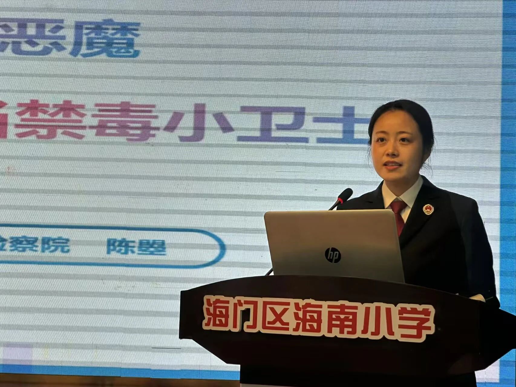 为紧扣3月30日全国中小学生安全教育日主题,加强青少年毒品预防教育工作,全面提升小学生识毒、防毒、拒毒的意识与自我保护能力,筑牢校园无毒安全防线,3月26日下午,江苏省南通市海门区检察院检察干警、海南小学法治副校长陈曌走进校园,以“远离毒品大恶魔,争当禁毒小卫士”为主题,为该校学生带来了一堂生动且深刻的禁毒法治教育课。