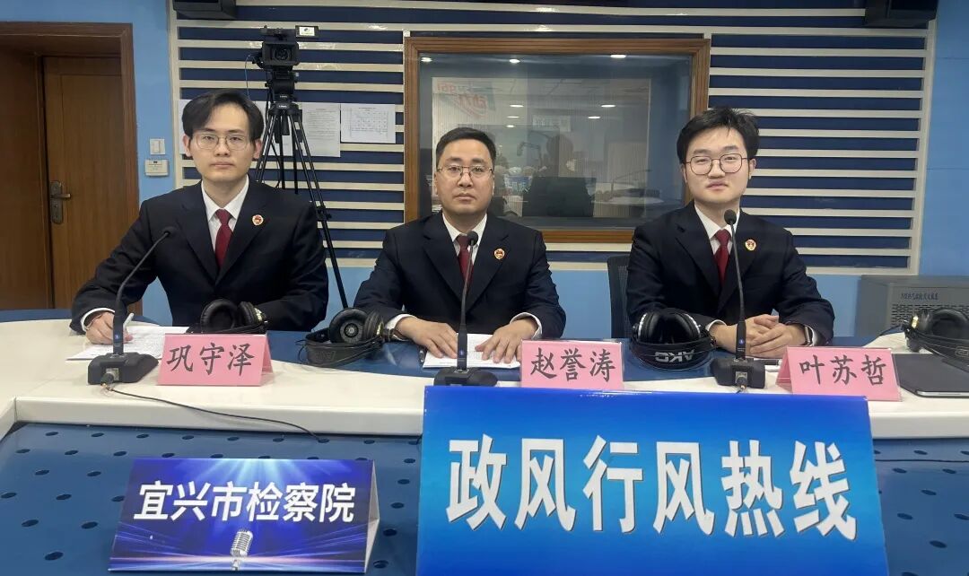 近日,江苏省宜兴市人民检察院党组成员、检委会专职委员赵誉涛带队走进宜兴交通台《政风行风热线》直播间,围绕“优化法治化营商环境,护航企业健康发展”主题,介绍宜兴检察护航企业发展、法治体检、保护知识产权工作的开展情况。
