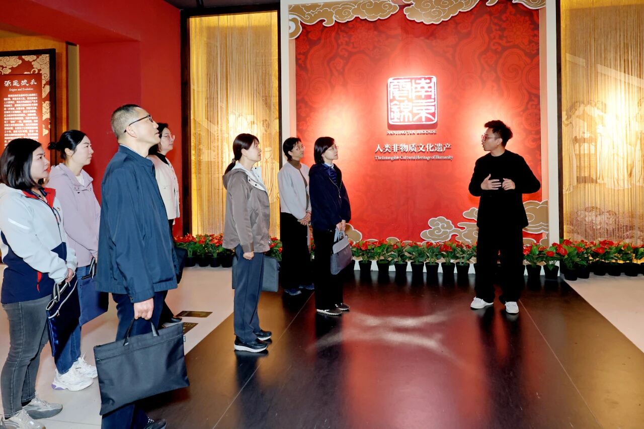 活动的第一站,全体人员走进位于建邺区茶亭东街的南京云锦博物馆。该馆是中国唯一的云锦专业博物馆、国家二级博物馆。步入展厅,展柜陈列着从元代至民国的云锦珍品。云锦因美如云霞而得名,元明清三朝为皇家御用贡品,被誉为“东方瑰宝、中华一绝”。