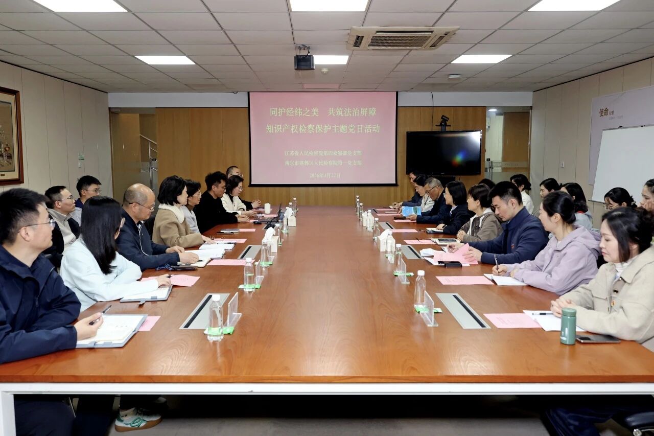 在4月26日世界知识产权日来临之际,为进一步推动非物质文化遗产领域的知识产权司法保护工作,近日,江苏省检察院经济犯罪检察部联合建邺区检察院共同开展了“同护经纬之美 共筑法治屏障”知识产权检察保护主题党日活动。江苏省检察院经济犯罪检察部主任余红,建邺区检察院党组书记、检察长蒋晓春,省、区检察院党员干警,南京云锦研究所、南京云锦行业协会相关代表共30余人参加了活动。活动由建邺区检察院党组副书记、副检察长杨旦主持。