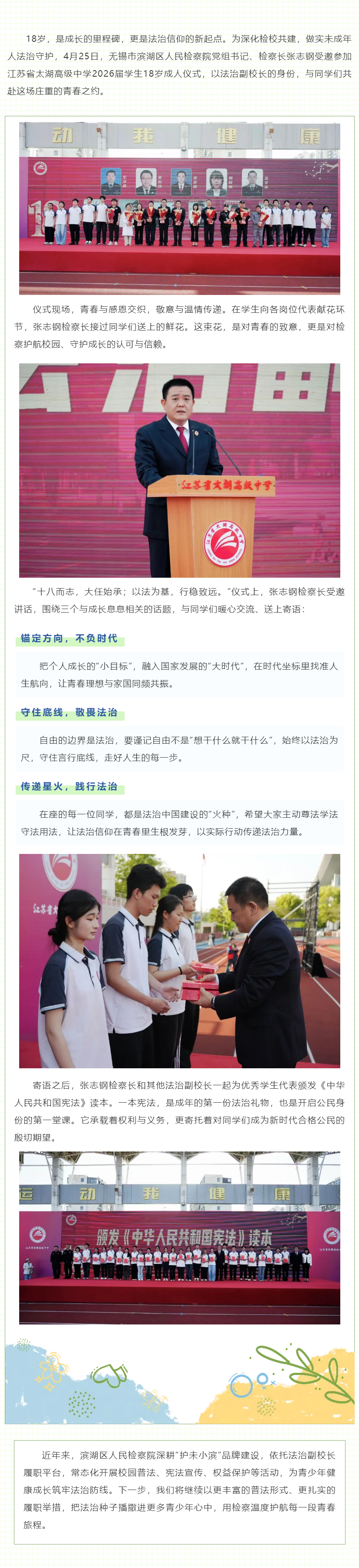 “宪法”加冕,检察同行!无锡市滨湖区检察院举行法治“成人礼”
